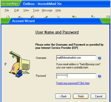 My incoming mail server type is bölümünde POP3 seçili iken , Incoming ve Outgoing mail server ayarlarınız mail.domainisminiz.com şeklinde ayarlayınız. Örneğin mail.kriweb.com şeklinde Next> butonuna basarak devam ediniz.